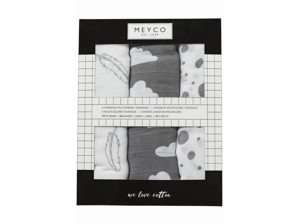 Pleny 3-balení Feathers-clouds-dots grey/white