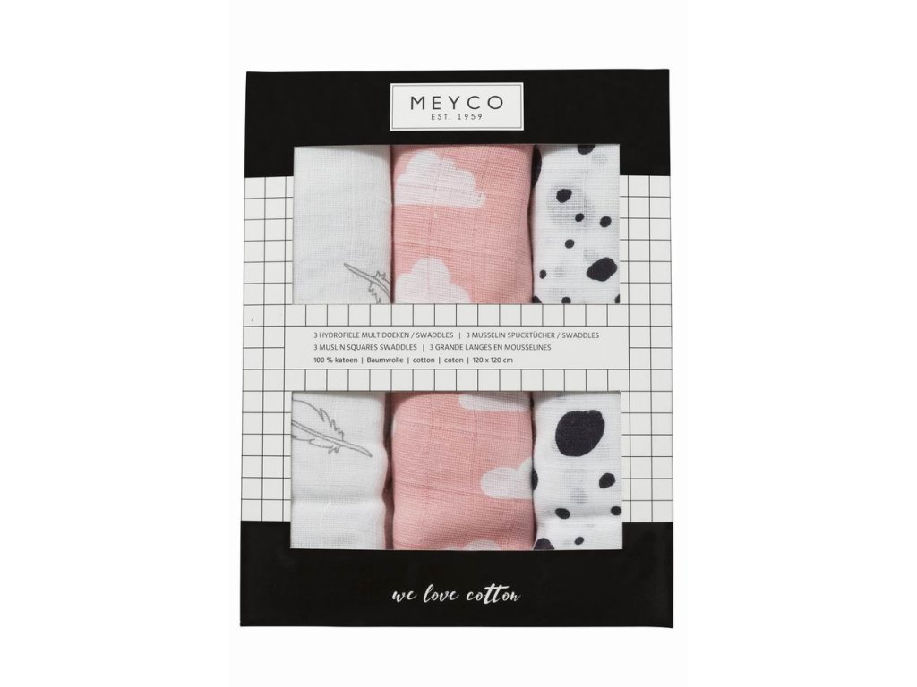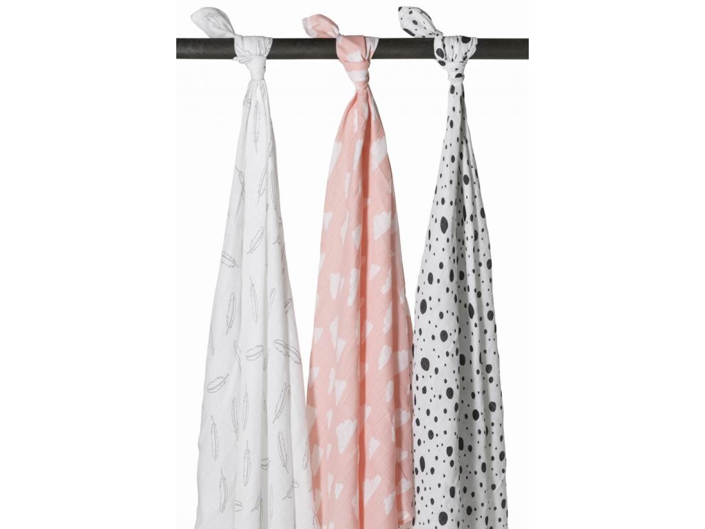 Pleny 3-balení Feathers-clouds-dots pink/white/grey/black