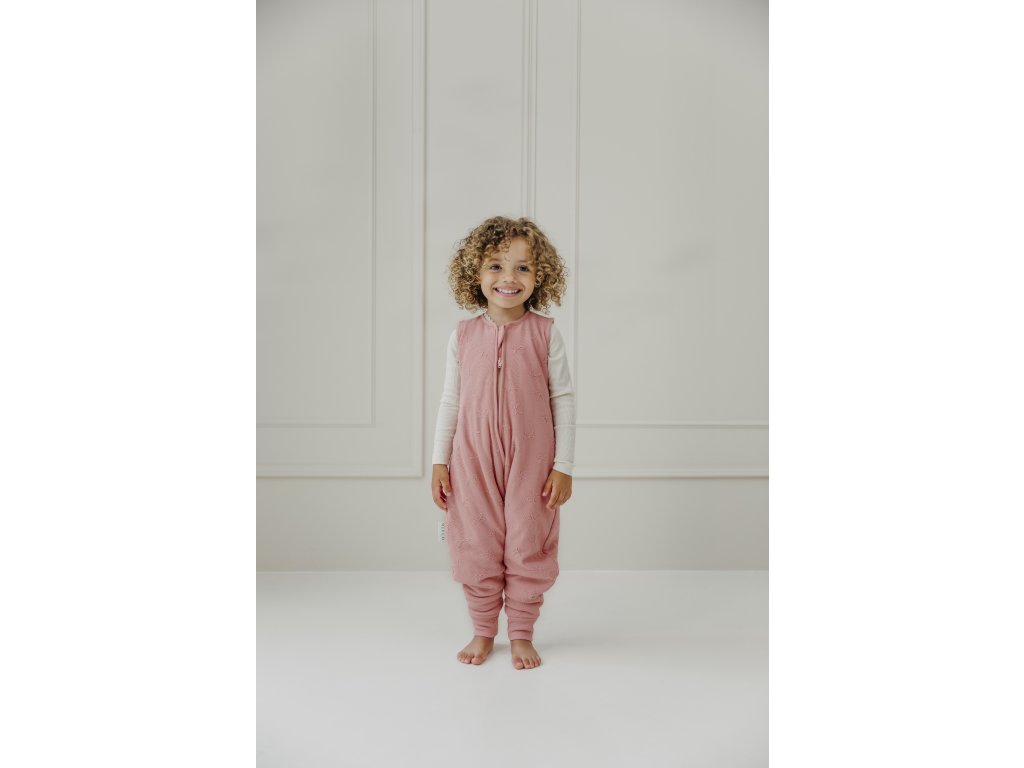 Spací vak je vyroben - vnější materiál z 56 % bavlny, 40 % polyesteru a 4 % spandexu a měkkou vnitřní podšívkou ze 100 % bavlny, která zajišťuje měkký komfort a příjemné prostředí na spaní s dostatečnou ventilací a dobrou regulací vlhkosti. Během chladných nocí si vaše dítě může strčit nožičky do nožiček. Dlouhý zip, který jde až dolů, usnadňuje oblékání a svlékání, usnadňuje přebalování vašeho dítěte. Spací vak na spaní má hodnotu TOG 2,0. Čím vyšší je hodnota TOG, tím je teplejší.